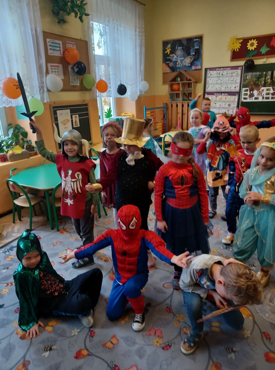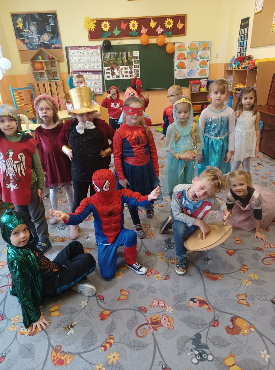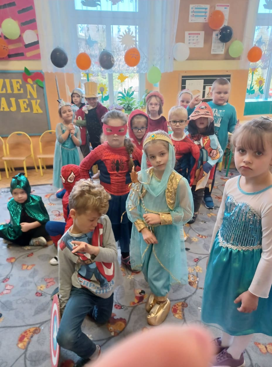 W dniu 05. 11. 2021r. obchodziliśmy Światowy Dzień Postaci z Bajek. Dzieci przebrały się w stroje swoich ulubionych , bajkowych postaci. Zabawa polegała również na wykazaniu się znajomością treści bajek. W tym celu przedszkolaki rozwiązywały zagadki słowne i obrazkowe, rozpoznawały cytaty i ilustracje , uczestniczyły w zabawie tanecznej.
