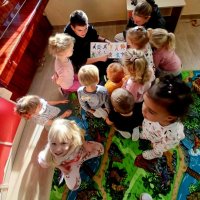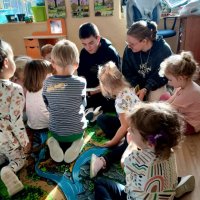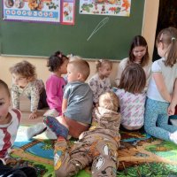 W ramach realizacji zadań z Narodowego Programu Rozwoju Czytelnictwa uczniowie klasy 8 cały październik czytali bajki i wiersze dzieciom przedszkolnym zarówno w grupie młodszej - Leśne Ludki, jak i w grupie starszej - Dąbrowskie Bobry.
