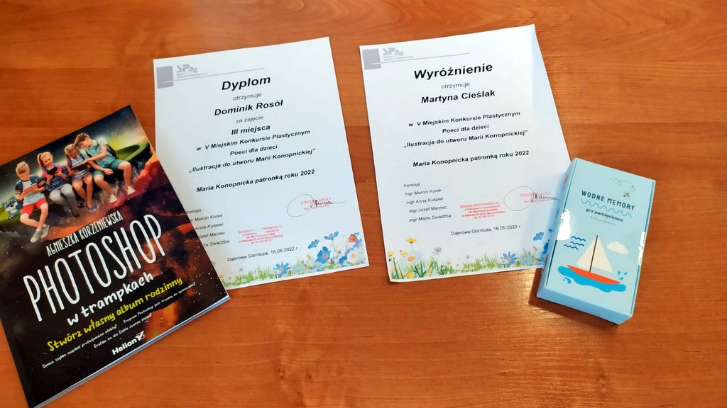 Gratulujemy Dominikowi Rosołowi, który zajął III miejsce oraz Martynie Cieślak, której praca została wyróżniona. Życzymy dalszych sukcesów oraz dużo przyjemności płynącej z lektury utworów Marii Konopnickiej.