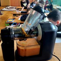 Podczas zajęć uczniowie dowiedzieli się jakie witaminy i wartości odżywcze zawierają owoce i warzywa oraz jaką rolę pełnią w odżywianiu człowieka. Na zakończenie zajęć dzieci wykonały tematyczne prace plastyczne z różnych materiałów oraz „przyrządziły” pyszny sok.
